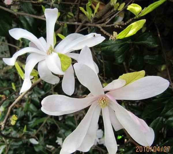 Tarhamagnolia ‘Leonard Messel’ on yksi kestävimpiä magnolioitamme. Sen vaaleanpunaisista nupuista aukeaa suuret, lähes valkeat kukat juuri ennen lehtien puhkeamista.