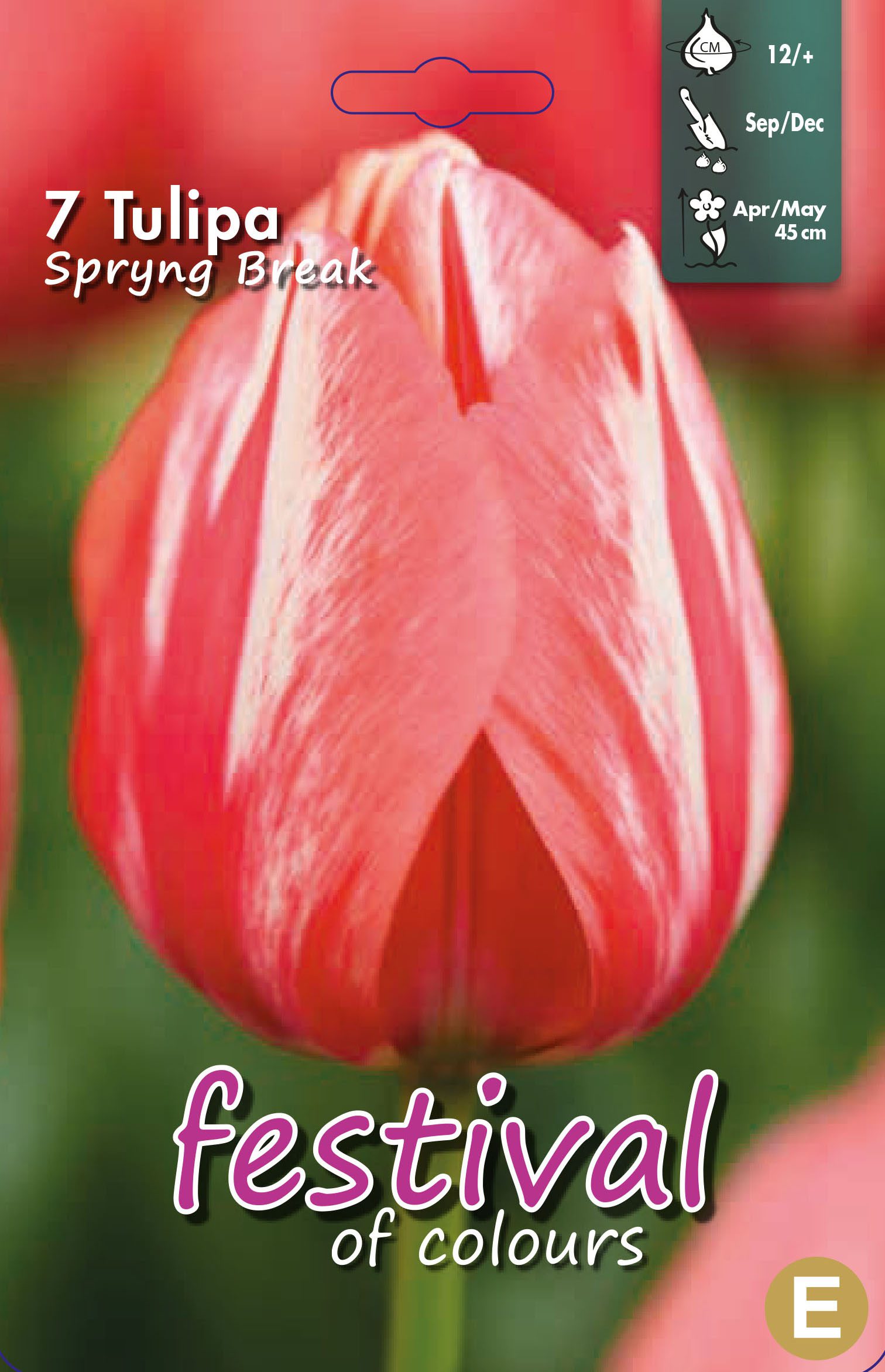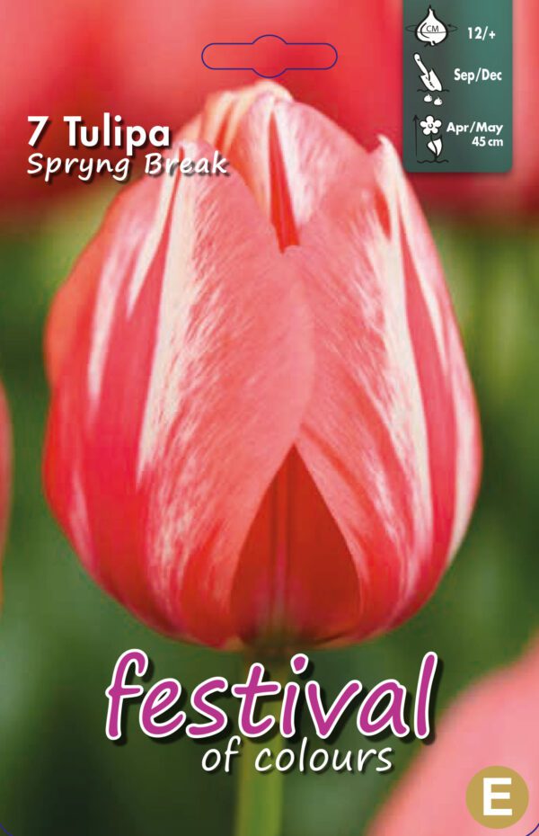Ihastuttava kaksivärinen Triump- tulppaani. Sirot vaaleanpunaisen ja valkoisen eri sävyissä hehkuvat kukat touko- kesäkuussa.