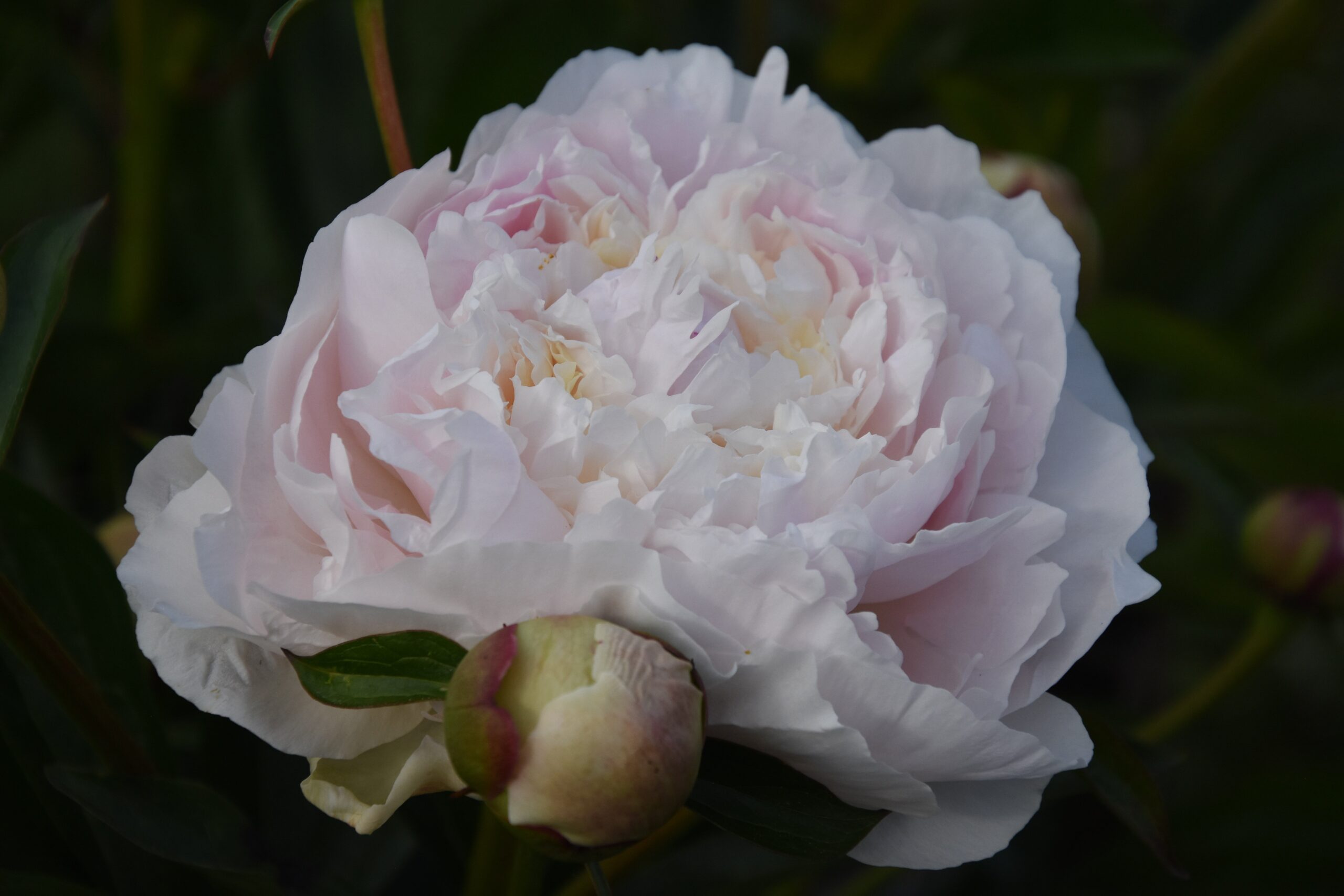 Pioni ‘Moon River’ on arvostettu lajike, joka tunnetaan suurista, tuoksuvista, kermanvalkoisista ja hennosti vaaleanpunertavista kukistaan.