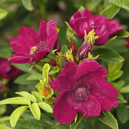 ‘Strandperle Norderney’ -ruusulla on yksinkertaiset, tumman purppuraisina hehkuvat kukat, joissa on miellyttävä tuoksu. Runsas kukinta alkaa keskikesällä ja jatkuu jaksoittain syksyyn asti. Leveäntuuhea, alle metrin korkuinen ruusu sopii erilaisiin istutusryhmiin.