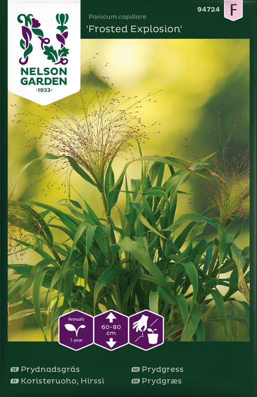 Frosted Explosion -hirssilajikkeen kärjissä kasvaa koristeellisia töyhtöjä. Koristeruoho on näyttävä kesäkukkien seurassa ja perennoissa. Hillitty kasvi sopii myös kimppuihin, mutta on kaunis myös yksinään.