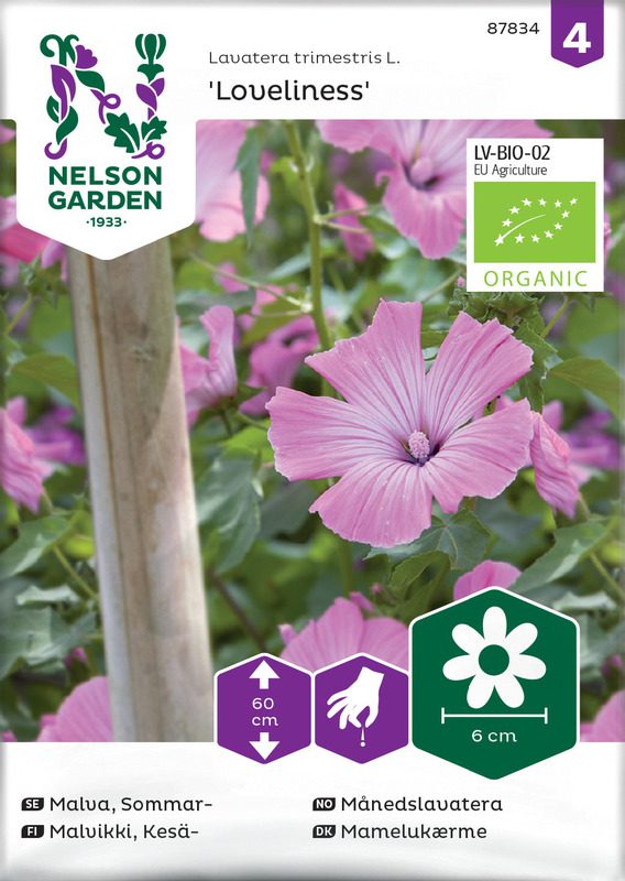 Luomulaatuinen siemen. Tyylikäs kesämalvikki. Tämä lajike on hyvin helposti viljeltävä, ja se muodostaa kesän jälkimmäisellä puoliskolla runsaasti hieman suppilomaisia kukkia. Loistava kukkapenkeissä ja kimpuissa. Suorakylvö huhti-kesäkuussa. Kastele kylvöala ennen kylvöä. Pidä kylvös kosteana.