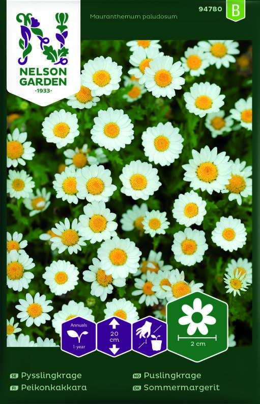 Todella sievä ja suosittu päivänkakkaramainen kesäkukka. Kukat n. 2cm leveät, lehdet vaaleanvihreät. Erinomainen ruukkukasvatukseen, parvekelaatikkoon sekä kukkapenkin reunaan. Viihtyy ravinteikkaassa, multavassa ja läpäisevässä maassa.
