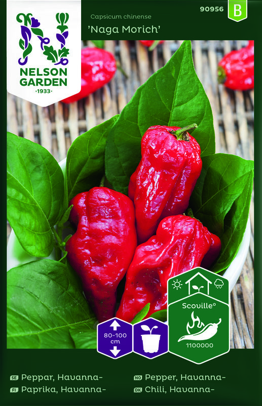 Erittäin voimakas chili, sukua ‘Dorset Naga’ -lajikkeelle. Maku on hieman makea ja savuinen, ja tulisuus voimistuu hiljalleen. Sopii kastikkeisiin ja marinadeihin. Älä unohda käsipesua koskettuasi hedelmään. Sopii ruukkuun aurinkoiselle ja lämpimälle terassille tai parvekkeelle, toki myös kasvihuoneeseen. Lannoita ja kastele säännöllisesti. Esikasvatus joulu-tammikuussa. Kylvä kosteaan kylvömultaan. Pidä kosteana, peitä muovilla. Sijoita itämään lämpimään (20-22 °C). Taimettumisen jälkeen, siirrä valoisaan ja viileämpään. Kouli kasvaneet taimet 1/ruukku lannoitettuun multaan. Istuta ulos kun yölämpötila yli 8 °C.