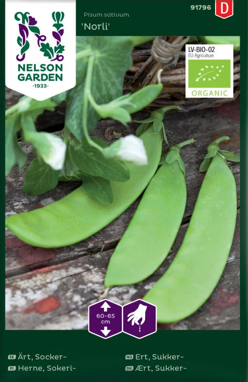 Luomulaatuinen siemen. Matala ja nopea sokeriherne, maukkaat herneenpalot. Täydellinen kylvää aikaisin keväällä kasvihuoneessa aikaista satoa varten. Kasvaa vain 60 cm korkuiseksi, tarvitsee vain yksinkertaisen tuen pysyäkseen pystyssä. Suorakylvö aikaisin, heti kun maa on muokattavissa. Liota siemeniä vedessä muutama tunti ennen kylvöä. Kastele vako ennen kylvöä. Pidä kylvös kosteana kunnes siemenet ovat itäneet.