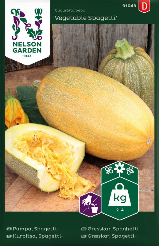 Hieman erilainen ja jännittävä keltahedelmäinen kurpitsa. Hedelmien paino n. 2-4 kg. Sen hedelmäliha muuttuu kypsennettäessä spagettimaiseksi, syödään myös spagetin tavoin. Voidaan varastoida raakana, viileässä 1-2 kk. Esikasvatusta suositellaan. Esikasvatusaika huhti-toukokuussa. Kylvä 3-4 viikkoa ennen ulosistutusta, yöpakkasten mentyä. 1 siemen/ruukku, lannoitettuun multaan. Sijoita itämään lämpimään (25-28 °C). Taimettumisen jälkeen, siirrä valoisaan huoneenlämpöön. Suorakylvö maan eteläosassa lämpimään maahan,+15 °C touko-kesäkuussa.