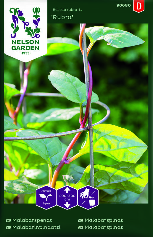 Köynnöstävä lehtivihannes, jonka punaiset ruodit ja tummanvihreät lehdet tekevät siitä kauniin ja koristeellisen. Kylvä yksi siemen/ruukku ja anna itää 25 °C:ssa. Poimi lehtiä vähitellen tai käytä koko taimi kerralla, kun se on noin metrin korkuinen. Säästä noin 20 cm tyvestä sekä muutamia lehtihankoja, niin taimi lähtee uudelleen kasvamaan. Sopii hyvin ruoanlaittoon, sekä lehdet että varret voi käyttää pinaatin tapaan. Maistuu myös gratiineissa, lisää muutama lehti pataruokaa suurustamaan. Itäminen saattaa kestää. Esikasvatus helmi-maaliskuussa. Suorakylvö heinä-huhtikuussa.