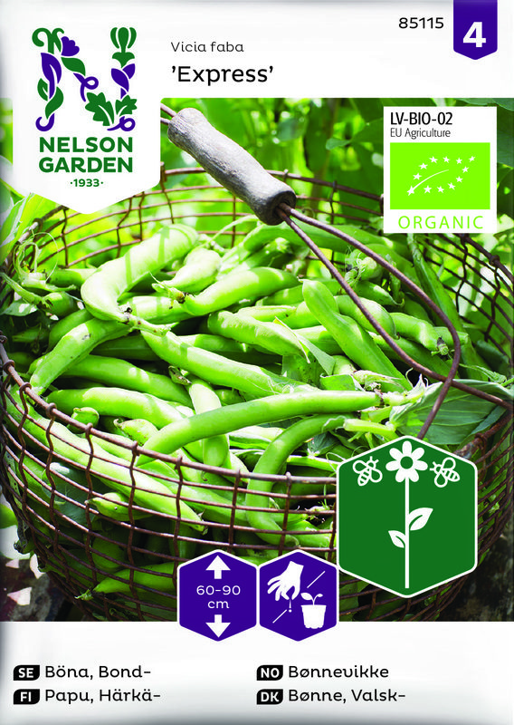 Luomulaatuinen siemen. Hyvin aikainen härkäpapu, jonka sato korjataan vähitellen. Nauti palot tuoreena kevyesti keitettynä tai anna tuleentua ja kuivua varastointia varten. Multaa taimet n.10 cm korkuisena. Käytä tukea tuulisilla paikoilla. Suorakylvä maahan heti kun maa on muokattavissa – kesäkuun alkuun saakka. Kastele vako ennen kylvöä. Liota siemeniä yön yli. Pidä kylvös kosteana. Esikasvatusta suositellaan keski- ja pohjoisosiin maata. Kylvä 1 siemen/ruukku.