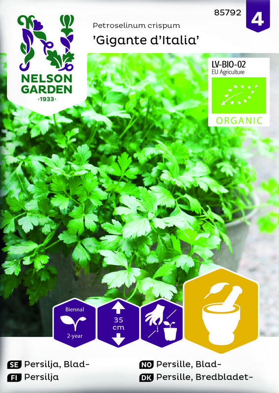 Luomulaatuinen siemen. Persilja sileine lehtineen on hyvin kaunis. Kerää lehtiä tarpeen mukaan myöhään syksyyn. Taimi talvehtii, ainakin maan eteläosissa. Antaa toisena vuonna varhaisen sadon ennen kukkimista. Sopii pakastettavaksi. Viihtyy ravinteikkaassa ja hyvin ojitetussa maassa. Kastele kuivalla säällä. Kylvä sisälle ruukkuihin myöhempää ulosistutusta varten tai suoraan kasvupaikkaan aikaisin keväällä. Persiljan itäminen saattaa kestää, pidä kylvös kosteana. Kerää lehtiä vähitellen, uusia kasvaa koko kauden ajan. Voidaan kasvattaa ympärivuoden sisätiloissa. Käytä kasvivaloa tarvittaessa.