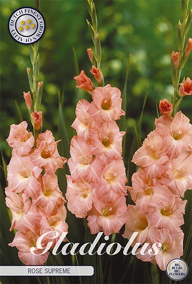 Miekkalilja ‘Rose Supreme’ on näyttävä gladiolus, joka kukkii roosanpinkein kukin. Erinomainen valinta kukkapenkkiin ja leikkokukaksi. Viihtyy aurinkoisella kasvupaikalla.