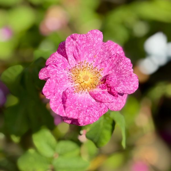 Ranskanruusu ‘Veera’ on soma ja napakankokoinen ruusupensas. Sen puolikerratut kukat ovat avoimet ja siten pölyttäjillekin mieluisat. Karmiininpunaiset terälehdet ovat pilkuttuneet vaaleammalla sävyllä. Kukinnan jälkeen muodostuu pieniä, oransseja kiulukoita. Aurinkoinen tai kevesti varjoisa kasvupaikka.