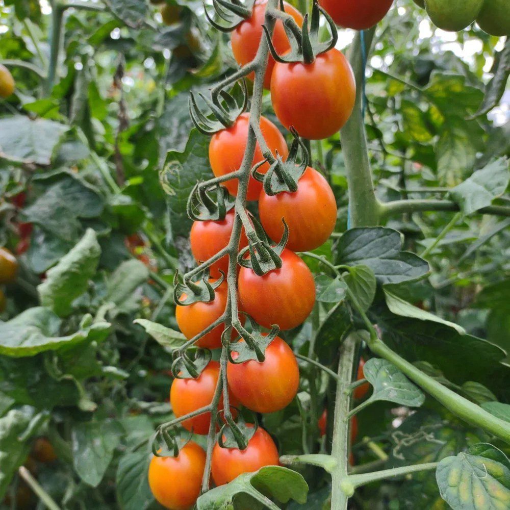 Kirsikkatomaatti ‘Aura’ on kaunis oranssinpunainen kirsikkatomaatti, jonka hedelmät ovat noin 3 cm halkaisijaltaan. Voimakas aromi ja runsas makeus tekevät lajikkeesta erinomaisen naposteluun, salatteihin, pastoihin sekä grillivartaiden ja kesäisten antipastojen kruunuksi. Luomuviljelty taimi.