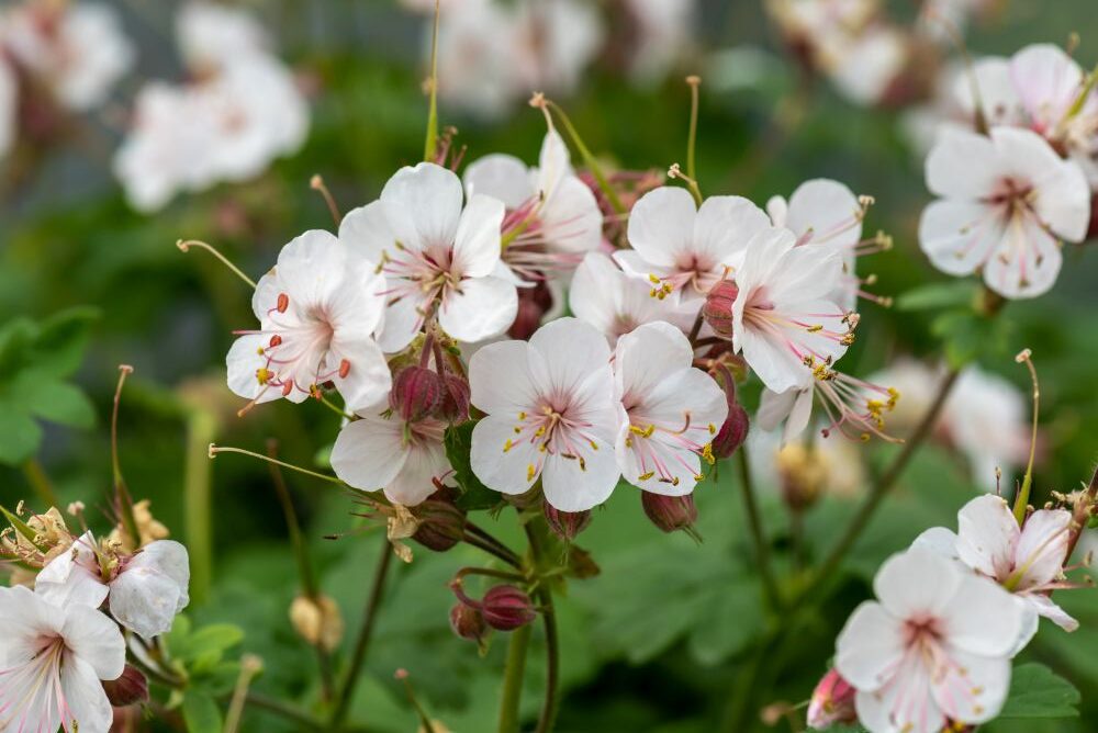 Tuoksukurjenpolvi ’GeranimoWhite’ on helppohoitoinen ja tuoksuvalehtinen maanpeittoperenna, joka kukkii valkoisin kukin kesä–elokuussa. Sen rehevä, aromikkaasti tuoksuva lehdistö säilyy pitkälle syksyyn ja saa valoisalla kasvupaikalla kauniin punertavan syysvärin.