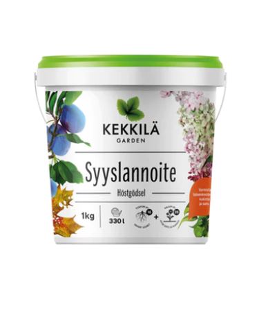 Syyslannoite sopii kaikkien puutarhan monivuotisten kasvien syyslannoitukseen. Anna lannoitetta kasteluveden mukana pihan puille, pensaille, perennoille sekä hedelmä- ja marjakasveille heinä-syyskuussa kun kasvit vielä kasvavat.