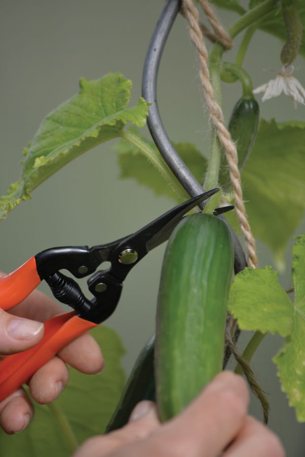 Curved Blade -sadonkorjuusakset auttavat puutarhan antimien keräämisessä. Taivutetun, ruostumattomasta teräksestä valmistetun terän ansiosta satoa pystyy käsittelemään helposti ja varovasti.